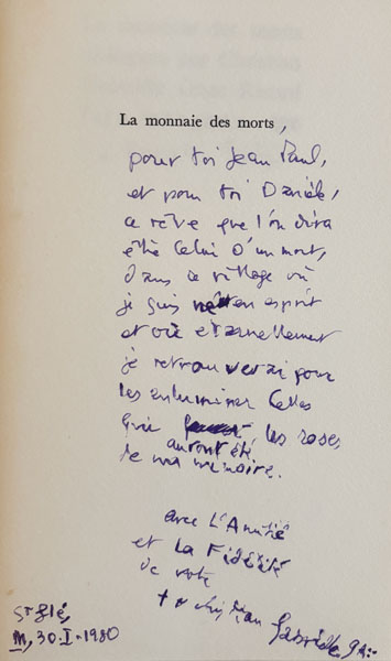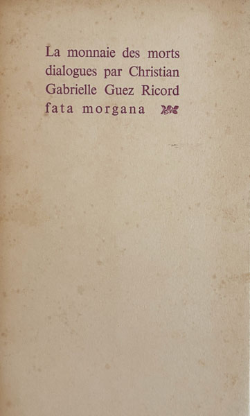 GUEZ RICORD (Christian Gabrielle). La Monnaie des morts. Dialogues.