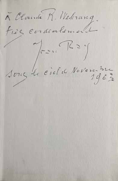 RAY (Jean). Oeuvres complètes, 1-4. Paris, Robert Laffont, 1963-1966, 4 volumes in-8, reliures éditeur, jaquettes, 410, 412, 414 et 508 pages, au format 20,5 x 3,5 cm. Edition originale collective. Tome 1 : le Livre des Fantômes - Les Cercles de l'Épouvante - La Cité de l'indicible Peur / Tome 2 : Les Contes du Whisky - Le Grand Nocturne - La Croisière des Ombres - Saint-Judas-de-la-Nuit / Tome 3 : Les Contes de Canterbury - Malpertuis - Les Nouveaux Contes / Tome 4 : Huit aventures d’Harry Dickson. Bel envoi autographe signé de l’auteur sur le premier volume. 400 € |