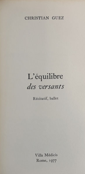 GUEZ RICORD (Christian Gabriel) sous le nom de Christian GUEZ. L’équilibre des versants.