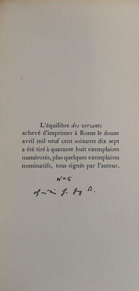Rome, Villa Médicis, 1977, in-8, broché, n.p. Edition originale. 1/48 ex. (tirage unique) sur papier de Rives, justifié et signé par l’auteur. Prix de Rome en 1973 Christian Gabrielle Guez Ricord deviendra pensionnaire de la Villa Médicis.