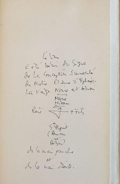25880 GUEZ RICORD (Christian Gabrielle). La Monnaie des morts. Dialogues. Montpellier, Éditions Fata Morgana, 1979, in-8, broché, couverture rempliée. Edition originale. 1/30 ex. de tête sur vélin Johannot, comportant un dessin original signé de l’auteur. Très long envoi autographe signé sur plusieurs pages à Jean-Paul Guibbert. Annotations manuscrites de l’auteur à plusieurs endroits (notamment en fin de volume et même au rabat de la couverture). Agrémenté en outre de plusieurs petits dessins originaux. Une photographie originale en couleurs (13,5 x 9 cm), C.G.G.R. devant un village du Lubéron. Annoté au dos: Pour votre livre de messe… Des rousseurs, surtout sur la couverture… mais exemplaire unique.