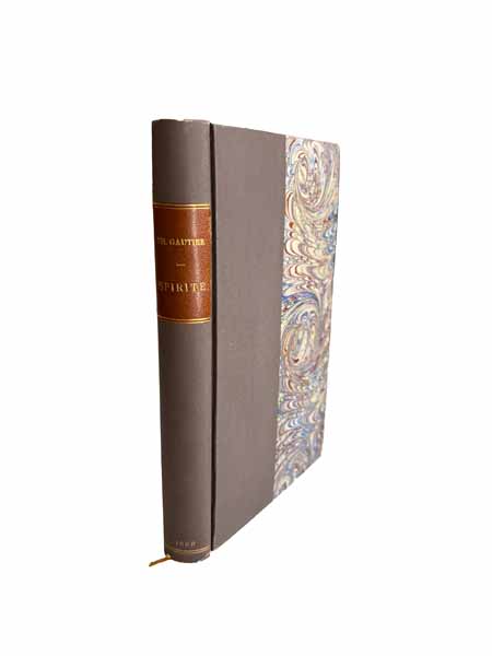 GAUTIER (Théophile). Spirite, nouvelle fantastique. Paris, Charpentier, 1865, in-12, bradel demi-percaline taupe, couverture et dos conservés, non rogné, (reliure de l'époque), 235 p. + Extraits du catalogue de l’éditeur. Edition originale. De la bibliothèque Léon HENNIQUE (ex-libris). Provenance de qualité car Hennique, assigné le plus souvent comme écrivain naturaliste - il fit parti du Groupe de Médan -, est aussi l’auteur d’un roman mêlant fantastique et spiritisme, Un Caractère, publié pour la première fois chez Tresse & Stock en 1889. Rien d’étonnant donc de trouver le roman de Gautier parmi les livres de sa bibliothèque. Agréablement relié.