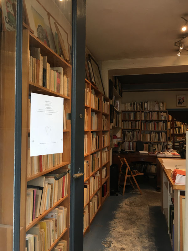 La librairie est située à deux pas de la bibliothèque de l’Arsenal, dans une rue où Charles Baudelaire a vécu et où est mort Jim Morrison.