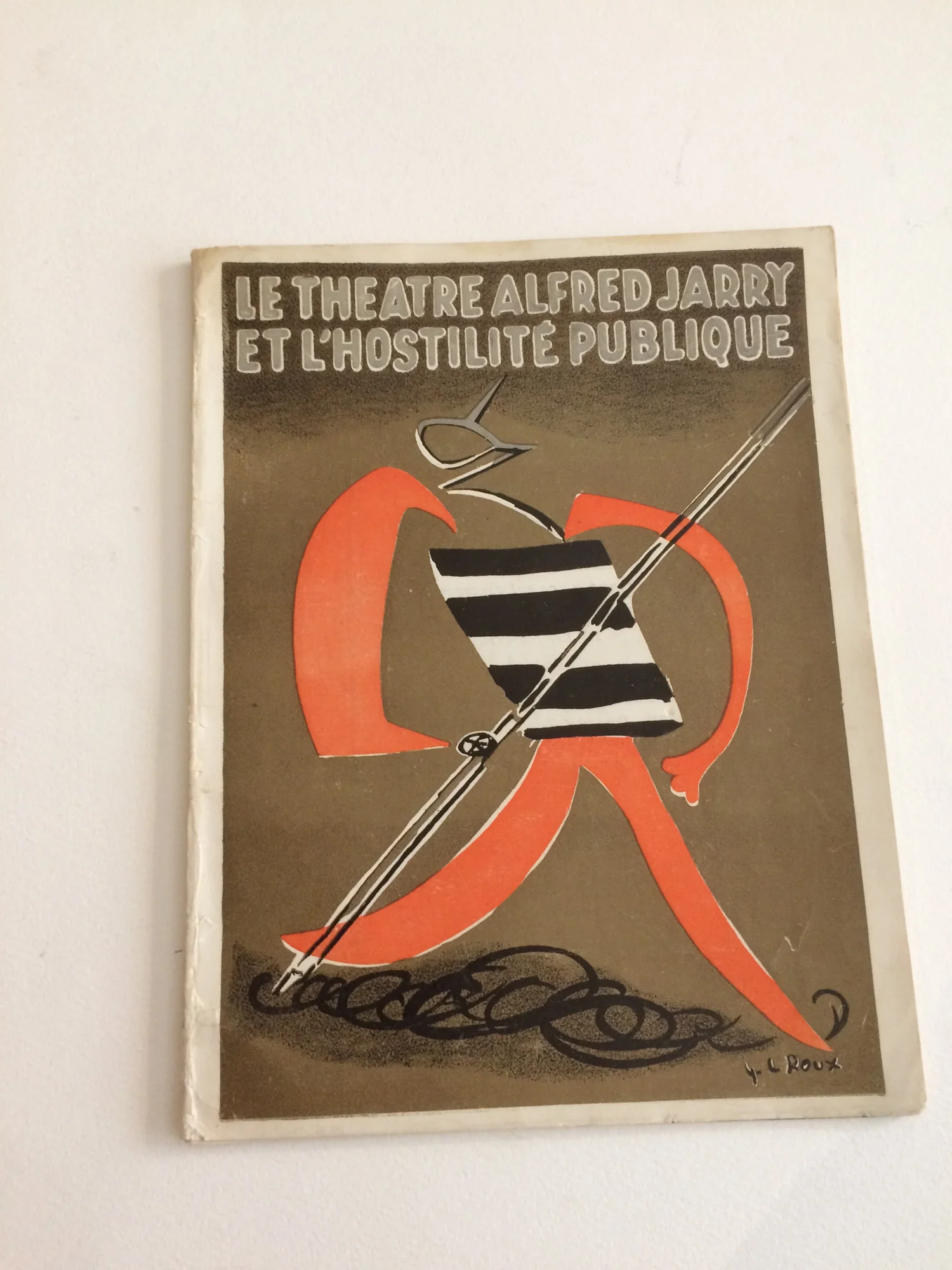 (Paris), Le Théâtre Alfred Jarry, 1930, in-8, br., couverture illustrée en couleurs par Gaston-Louis Roux, 48 p. 9 photomontages par Eli Lotar. Le Théâtre Alfred Jarry donnera 4 spectacles entre 1927 et 1930 dont Ventre brûlé ou la mère folle par Artaud, les Mystères de l'amour et Victor ou les enfants au pouvoir de Vitrac, Le partage de Midi de Claudel, le film de Gorki La mère, Le Songe ou jeu de rêves de Strindberg. A l'issue de cette tumultueuse aventure et par-delà son échec commercial et public, Vitrac et Artaud décident de publier cette brochure qui est à la fois un bilan, un manifeste et un programme - notamment concernant la mise en scène et la direction des acteurs - afin de relancer l'entreprise et trouver de nouveaux financements. Elle est illustrée de 9 photomontages à pleine page d'Eli LOTAR, à la fois "histoires sans paroles" et "tableaux vivants" empreints d'humour noir et d'inquiétante étrangeté, ils mettent en scène Artaud, Vitrac et Josette Lusson. Cette dernière apparaitra l'année suivante sur les photographies du projet de mise en scène du Moine de Lewis. Cette publication sera l'ultime sursaut du Théâtre Alfred Jarry.