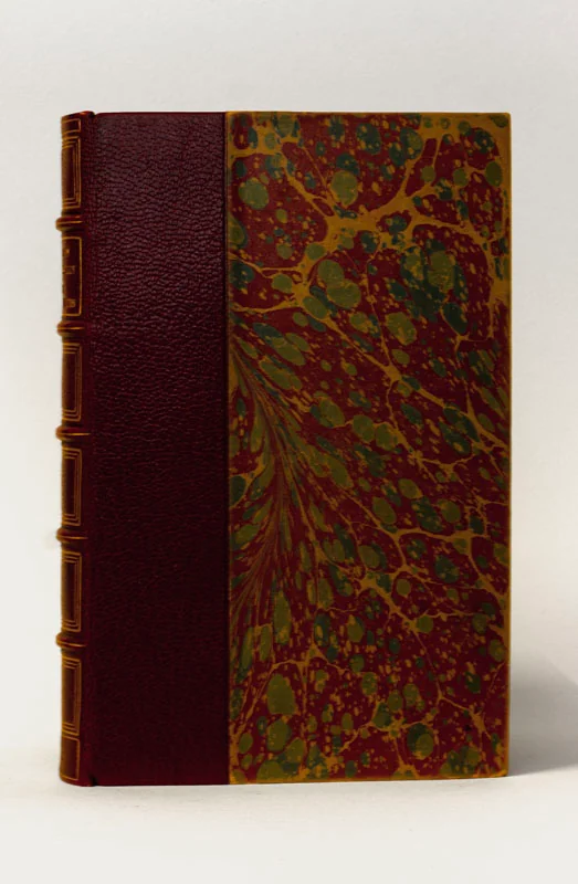 Paris, E. Dentu, 1874, in-12, relié demi-maroquin grenat, dos à 5 nerfs, caissons entourés de triples filets dorés, plats de papier marbré, tête dorée, couverture conservée, non rogné (reliure non signée début du XXe), VIII - 354 p.Édition originale. “Le dessous de cartes d'une partie de whist" paru en 1855 dans "L'ensorcelée". Une partie du tirage du livre fut détruit à la suite d'un procès. Exemplaire avec la couverture de toute première émission. Humoristique envoi autographe signé « À monsieur J. [... ?] avec le parapluie de l'auteur, Jules Barbey d’Aurevilly » (l’encre pour les premiers mots a été diluée au moment de la dédicace). Une fiche à l’intérieur du volume nous renseigne que le destinataire serait Jules Renard. Lettre autographe signé jointe, montée sur onglet, à Azambre « au Constitutionnel ». Valognes- Hôtel de Grandval-Caligny, 3 décembre 1874. 2 pages sur papier à en-tête "Never more", enveloppe conservée avec cachet de cire rouge, timbre et marques postales.