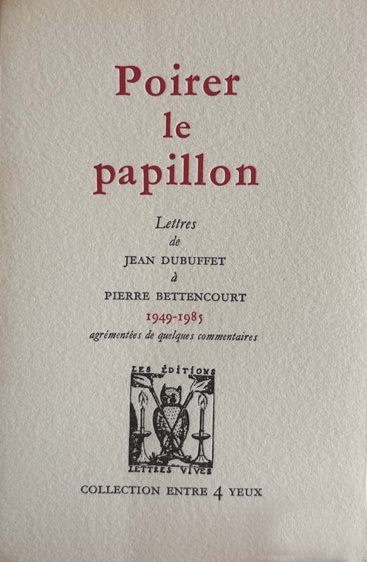 Poirer le papillon. Lettres de Jean Dubuffet à Pierre Bettencourt 1949-1985, agrémentées de quelques commentaires.