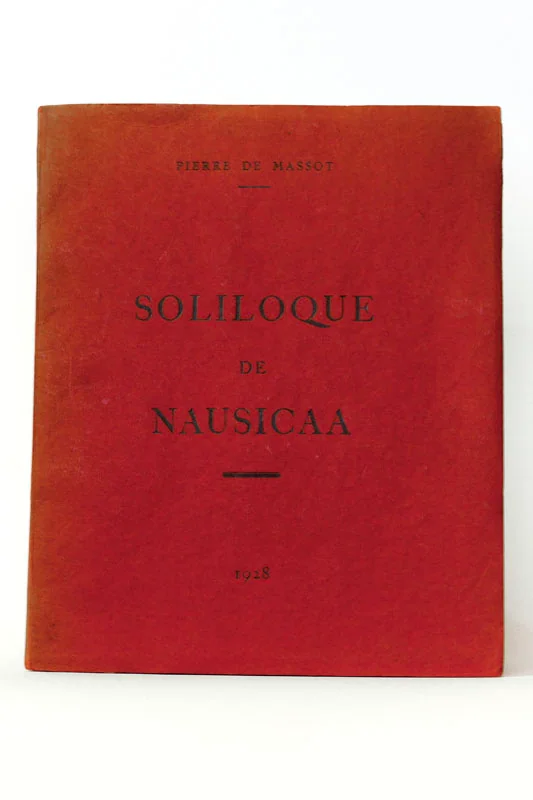 Avec 5 dessins de Jean Cocteau. Paris, sans éditeur (imprimé sur les presses d’E. Keller), 1928, in-8, broché, (32 p.) Édition originale. L’impression est en rouge, les dessins de Cocteau imprimés en noir, tirage unique à 34 exemplaires tous num. sur Chesterfield. Celui-ci enrichi d’un envoi autographe trilingue signé de l’auteur et d’un dessin à Mireille HAVET: "Für meinen Freund Mireille Havet, à l’auteur de « La Jeunesse perdue », cette jeunesse qui meurt. Pierre, Parigi, Gennaio 1928 Frankreich”, accompagné à l’encre rouge du dessin de la faucille et du marteau. Quelques rousseurs mais merveilleuse provenance datant de l’époque où Massot, Robbie et Rigaut fréquentaient l’auteur de Carnaval. Le manuscrit du roman dont il est fait allusion dans la dédicace, La Jeunesse perdue, finira par être égaré et ne sera pas retrouvé.