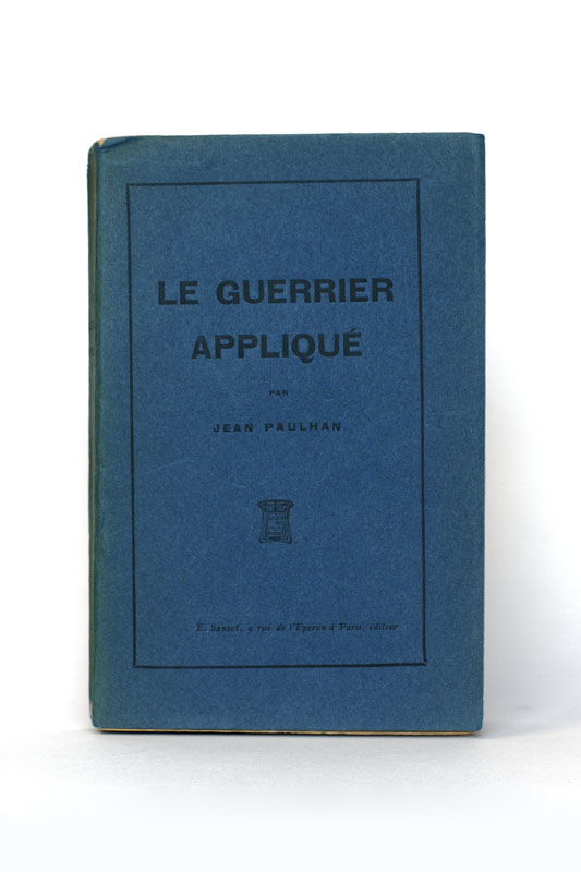 P., E. Sansot, s.d. (1917), in-12, br., 150 p. Edition originale parue à compte d'auteur. 1/470 ex. num. sur bouffant, celui-ci enrichi d'un bel envoi a.s. à Maurice TOESCA daté du 28 janvier 1945 : “LE GUERRIER APPLIQUE ou TRENTE ANS APRES à Maurice Toesca, son ami l’écrivain appliqué” accompagné d’une citation : “Vous auriez tord de croire qu’il y ait entre l’état de guerre et l’état de paix d’autres différences que de pure apparence” (Cervantes, La servante andalouse)”