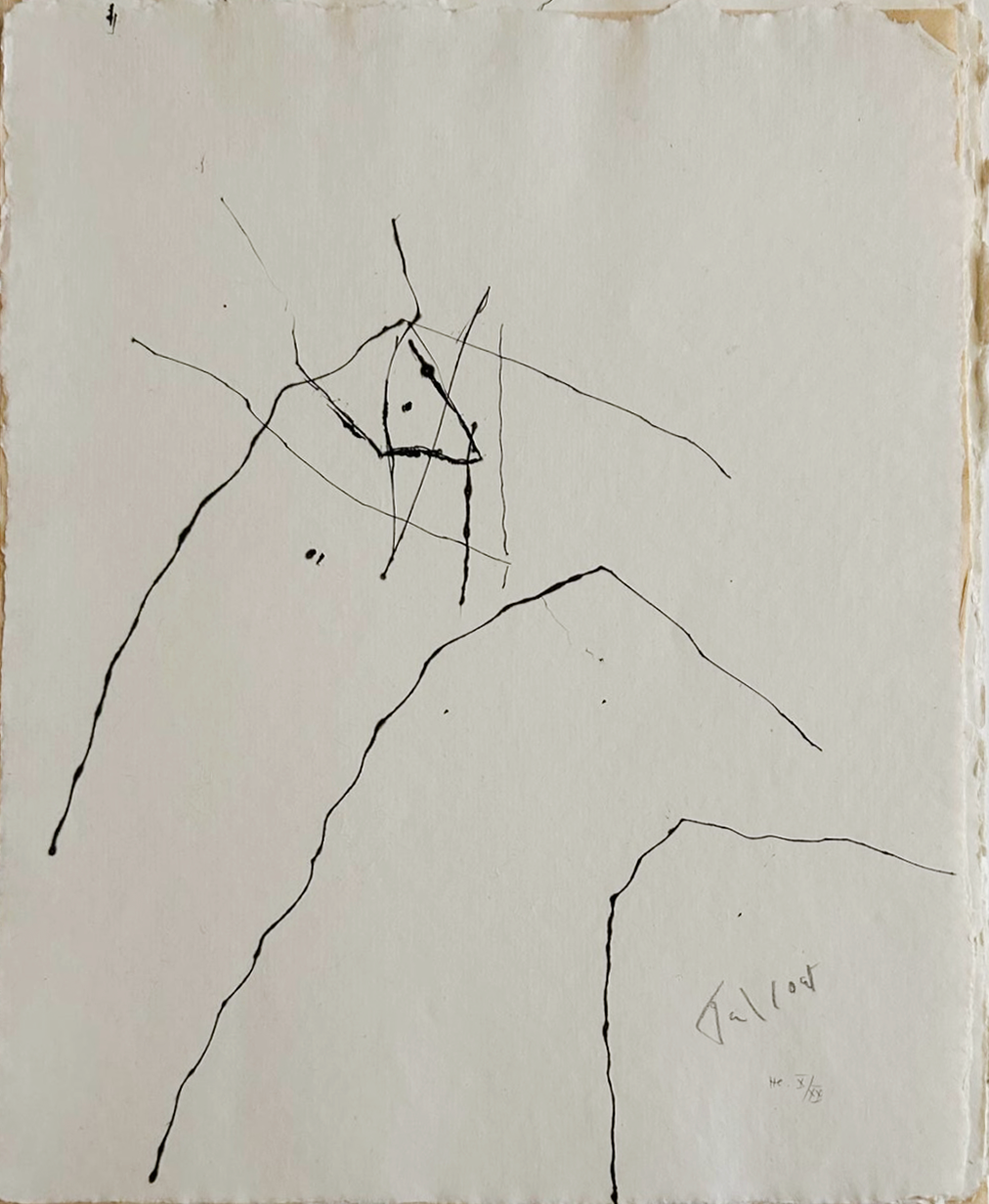 Montpellier, Fata Morgana, 1974, in-4 (22 x 28 cm), en feuilles, couv. rempl., chemise et étui de l’éditeur. Edition originale tirée à 80 ex. sur vélin d'Arches comportant 7 pointes-sèches originales de Pierre TAL COAT. 1/24 premiers exemplaires, celui-ci marqué H.C., réservés aux collaborateurs, justifié au crayon par l'auteur et l'artiste, avec une suite des sept gravures et deux planches supplémentaires, toutes signées, sur papier à la main de Georges Duchêne. Il joint 9 pages manuscrites de Pierre Torreilles sur feuillets 21 x 27 cm avec au verso son en-tête, correspondant au début du poème. Sous chemise de papier rose avec titre manuscrit et date.